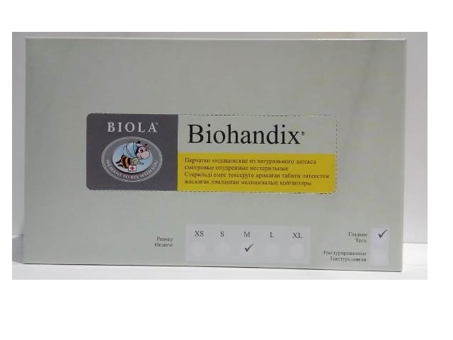 ерчатки медицинские из натурального латекса BiohandixÒ смотровые, опудренные, нестерильные.
