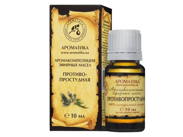 Польза аромакомпозиции: Аромакомпозиция эфирных масел «Противопростудная» Ароматика® является сильным антисептическим и бактерицидным средством при простудных заболеваниях, полезным не только взрослым, но и детям. Композиция способствует укреплению иммунитета, снимает воспаления мочеполовой системы, уменьшает ревматические боли, ускоряет заживление ран и трещин на коже.