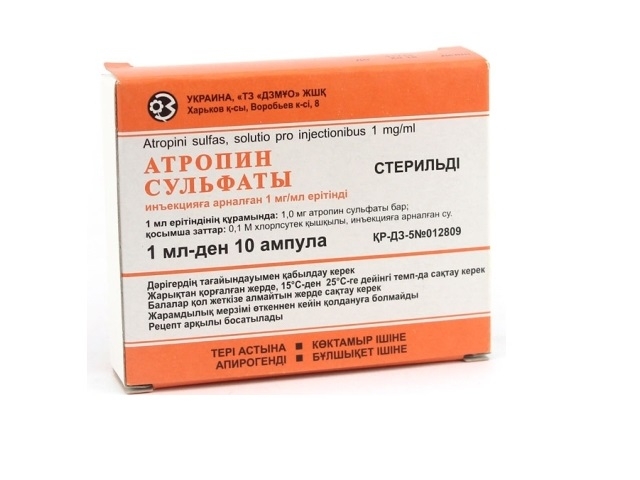Фармакологическое действие: Обладает М-холинолитической активностью. Блокирует М-холинореактивные системы организма. Введение атропина в организм сопровождается уменьшением секреции слюнных, желудочных, бронхиальных, потовых желез (последние получают симпатическую холинергическую иннервацию), поджелудочной железы, учащением сердечных сокращений (вследствие уменьшения тормозящего действия на сердце блуждающего нерва), понижением тонуса гладких органов (бронхи, органы брюшной полости и др.). Действие атропина более выражено при повышенном тонусе блуждающего нерва.