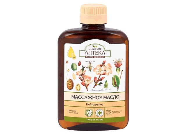Зеленая Аптека Массажное масло нейтральное 200 мл - Гипоаллергенный состав массажного масло позволяет использовать его для всех типов кожи. Масло хорошо впитывается, обеспечивает рукам легкое скольжение. Не оставляет на коже ощущение липкости. Подходит для детского массажа. Можно использовать как базовое масло, дополнительно обогащая его композициями эфирных масел. Не содержит консервантов и красителей.