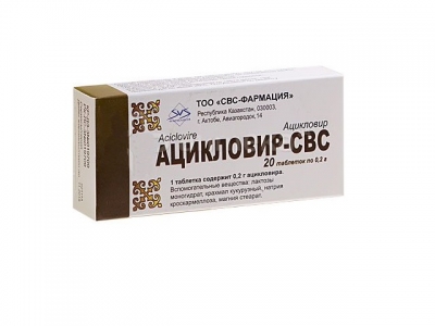 Ацикловир – СВС является синтетическим аналогом пуринового нуклеозида - дезоксигуанидина. После внедрения ацикловира в пораженную вирусом клетку под влиянием фермента тимидинкиназы, выделяемого вирусом, ацикловир переходит в ацикловир–монофосфат. При действии клеточной гуанилаткиназы ацикловир–монофосфат преобразуется в ацикловир–дифосфат, который ферментами клетки–хозяина (вируса) превращается в активную форму – ацикловир–трифосфат. Взаимодействуя с ДНК–полимеразой (VHS и VZV), подавляет репликацию вирусной ДНК. С помощью вирусной ДНК–полимеразы ацикловир–трифосфат может выстраиваться в растущие цепи ДНК, в результате чего в цепи ДНК появляется дефект и рост нового поколения вирусов прекращается. Препарат обладает высокой избирательностью действия на синтез вирусной ДНК. Включение ацикловира трифосфата в цепочку вирусной ДНК и последующий обрыв цепи блокируют дальнейшую репликацию вирусной ДНК.