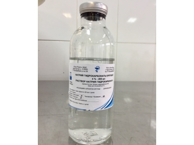 Взаимодействие с другими лекарственными средствами: В растворе натрия гидрокарбоната нельзя растворять кислые вещества (аскорбиновую, никотиновую и прочие кислоты), алкалоиды (атропин, апоморфин, кофеин, теобромин, папаверин и др.), сердечные гликозиды, соли кальция, магния, тяжелых металлов (железа, меди, цинка), т.к. происходит выпадение осадка, либо гидролиз органических соединений. Не смешивать с фосфат-содержащими растворами.