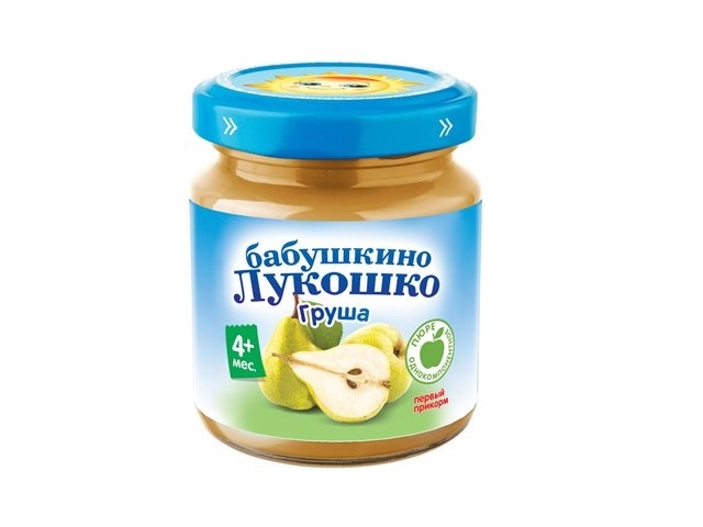 Пюре Бабушкино лукошко Груша без сахара для питания детей с 4 месяцев. Рекомендуется использовать в качестве первого прикорма малыша.
