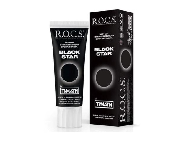 Зубная паста R.O.C.S. BLACK STAR Черная отбеливающая, 74 гр: инструкция по применения, отзывы покупателей, характеристики. Большой каталог Новинки на официальном сайте производителя.