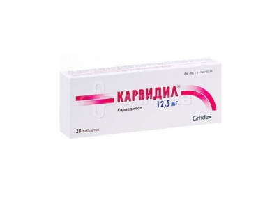 Фармакодинамика: Блокирует альфа1-, бета1- и бета2-адренорецепторы, оказывает вазодилатирующее, антиангинальное и антиаритмическое действие. Вазодилатирующий эффект связан главным образом с блокадой альфа1-рецепторов. Благодаря вазодилатации снижает общее периферическое сопротивление сосудов. Не имеет собственной симпатомиметической активности, обладает мембраностабилизирующими свойствами. Сочетание вазодилатации и блокады бета-адренорецепторов приводит к следующим эффектам: у больных с артериальной гипертензией снижение артерального давления не сопровождается увеличением общего периферического сопротивления сосудов, не снижается периферический кровоток (в отличие от бета-адреноблокаторов). Частота сердечных сокращений снижается незначительно. У больных ишемической болезнью сердца оказывает антиангинальное действие. Уменьшает пред- и постнагрузку на сердце. Не оказывает выраженного влияния на липидный обмен и содержание K+, Na+ и Mg 2+ в плазме. У больных с нарушениями функции левого желудочка или недостаточностью кровообращения благоприятно влияет на гемодинамические показатели и улучшает фракцию выброса и размеры левого желудочка. Оказывает антиоксидантное действие, устраняя свободные кислородные радикалы. Снижает риск смерти больных с декомпенсированной сердечной недостаточностью (на 65 %) и частоту госпитализаций (на 38 %). При умеренной хронической сердечной недостаточности снижает риск смерти на 28 %. Эффективность более выражена у пациентов с тахикардией (частота сердечных сокращений более 82 уд/мин) и низкой фракцией выброса (менее 23 %). Терапевтический эффект проявляется при ишемической этиологии хронической сердечной недостаточности и у больных с дилатационной кардиомиопатией.