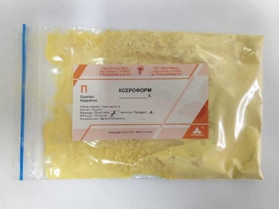 Состав: Ксероформ (трибромфенолят висмута) представляет собой порошок желтого цвета со слабо выраженным специфическим запахом. Частички порошка мелкие и не имеют правильного кристаллического строения (то есть порошок относится к категории аморфных веществ).