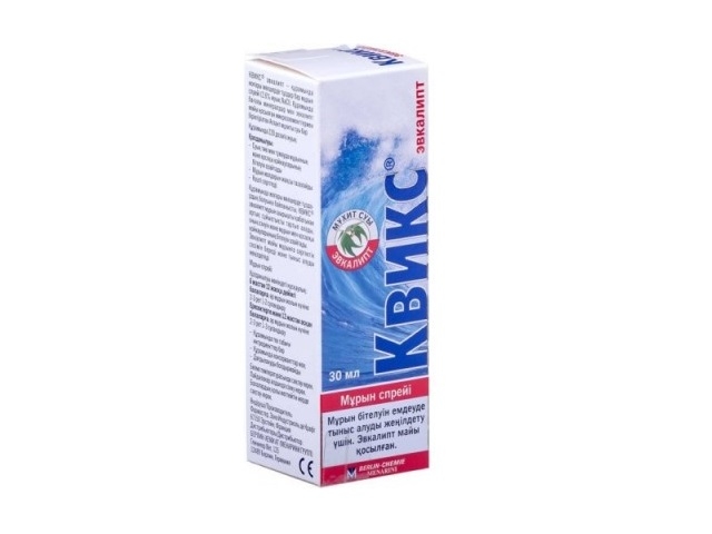Название изделия медицинского назначения Квикс® эвкалипт, спрей назальный во флаконе 30 мл. Для уменьшения заложенности в носу при ринитах. С маслом эвкалипта.