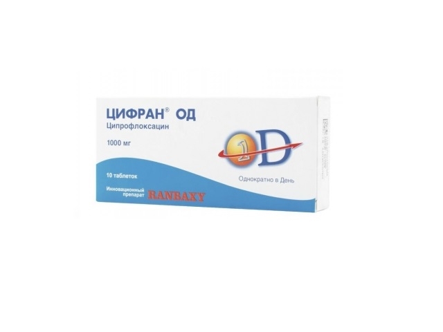 Описание: Таблетки овальной формы, покрытые пленочной оболочкой от белого до почти белого цвета, с надписью «Cifran OD 1000 MG» пищевой краской на одной стороне. Длина 21.2 ± 0.1 мм, ширина 10.6 ± 0.1 мм, толщина 7.6 ± 0.3 мм.