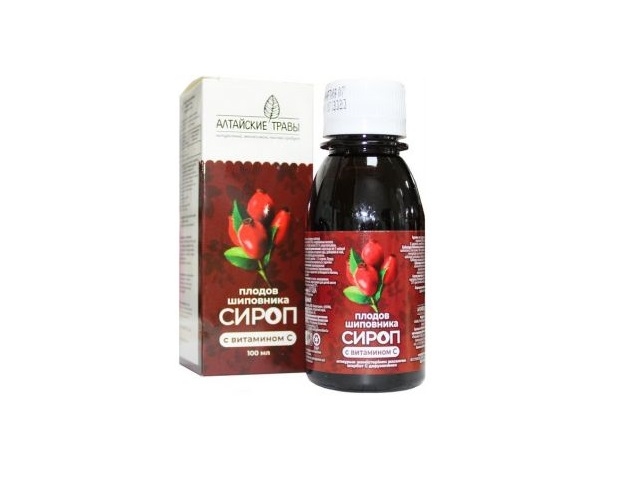 Сироп из плодов шиповника. Содержание в 15 мл сиропа (не менее) витамина С - 45 мг (60мг* - 900мг**) % от рекомендованного суточного потребления - 75