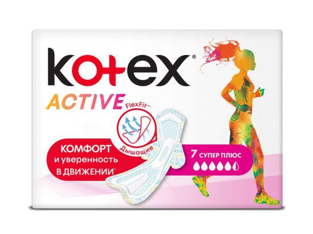 Новые ультратонкие прокладки Kotex Active Super, созданы специально для активных девушек. Благодаря технологии FlexFit они повторяют движения тела, а дышащая поверхность обеспечивает коже комфорт и уверенность в движении.