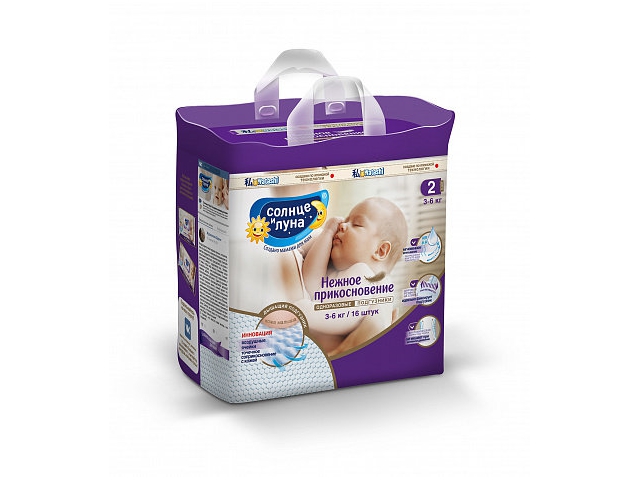 Детский бренд «Солнце и луна» представляет мамам инновационный продукт – подгузники "Солнце и Луна. Нежное прикосновение». Изготовлены по японской технологии и вобрали в себя все лучшее. Анатомическая форма подгузника не сковывает движений ребенка, а широкая растягивающаяся резинка делает посадку идеальной и защищает от протеканий, что особенно оценят родители активных малышей.