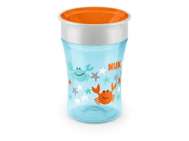 коническая форма стакана NUK Magic Cup 250 мл - идеально подходит для маленьких рук ребенка. Специальный силиконовый обод "разлив" 360 ° обеспечивает питье по всему диаметру стакана.