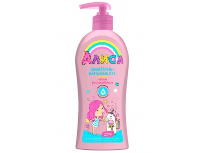 Мягкий шампунь-бальзам 2 в 1 АЛИСА бережно очищает волосы и кожу головы. а также облегчает процедуру ежедневного расчёсывания, делая её простой и безболезненной.