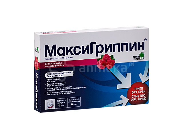 МаксиГриппин® – комбинированный препарат, оказывает обезболивающее, жаропонижающее действие, снимает симптомы слезотечения, насморка при простудных заболеваниях и гриппе, уменьшает отек слизистой оболочки верхних дыхательных путей.